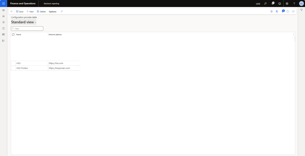 Every ER configuration that is added is marked as owned by an ER configuration provider. The ER configuration provider that is activated in the Electronic reporting workspace is used for this purpose. Therefore, you must activate an ER configuration provider in the Electronic reporting workspace before you start to add or edit ER configurations.