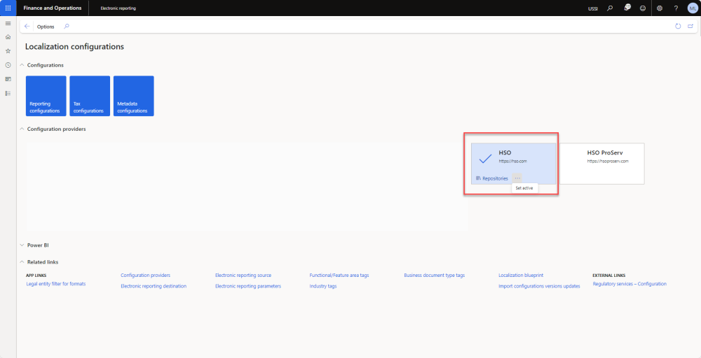 Go to Workspaces > Electronic Reporting > Localization configurations > Configuration Providers